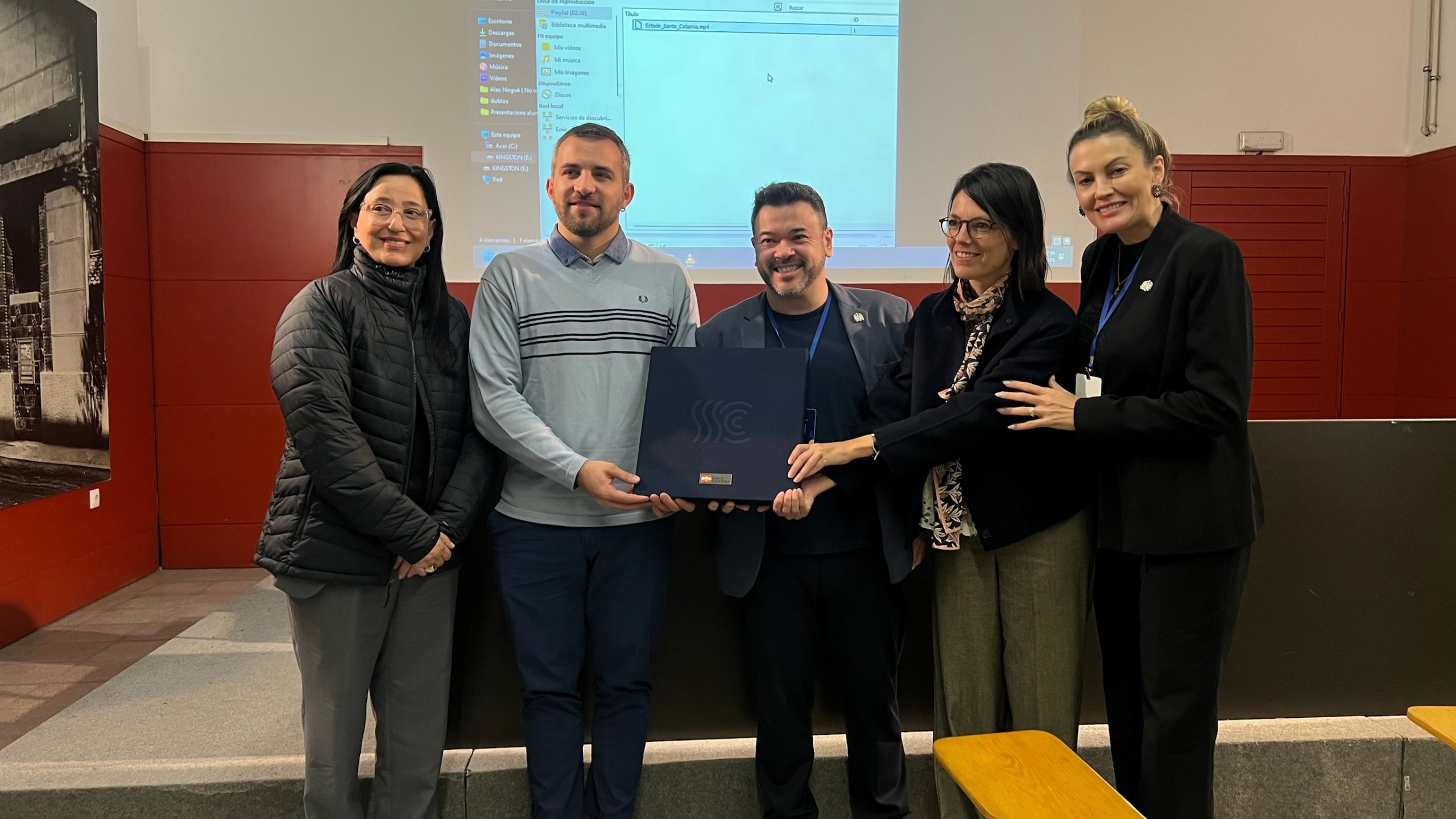 A recepção contou com um café de boas-vindas e falas institucionais que destacaram a importância da iniciativa e o papel das entidades parceiras na promoção de oportunidades de aprendizado e cooperação internacional. A comitiva foi inicialmente recebida pela gerente de Relacionamento da Fepese, Maria Luisa Bruciapaglia. Também fizeram uso da palavra o superintendente da Fundação, Marcelino Ito; a presidente da Uvesc e vereadora de Chapecó, Marcilei Andrea Pezenatto Vignatti; o professor da UFSC, Maurício Fernandes Pereira; o presidente da Fecomércio, Sesc e Senac de Santa Catarina, Hélio Dagnoni; o deputado federal e secretário de Estado da Agricultura e Pecuária, Carlos Alberto Chiodini; o secretário de Estado da Ciência, Tecnologia e Inovação, Edgard Usuy; e o deputado estadual Tiago Zilli.