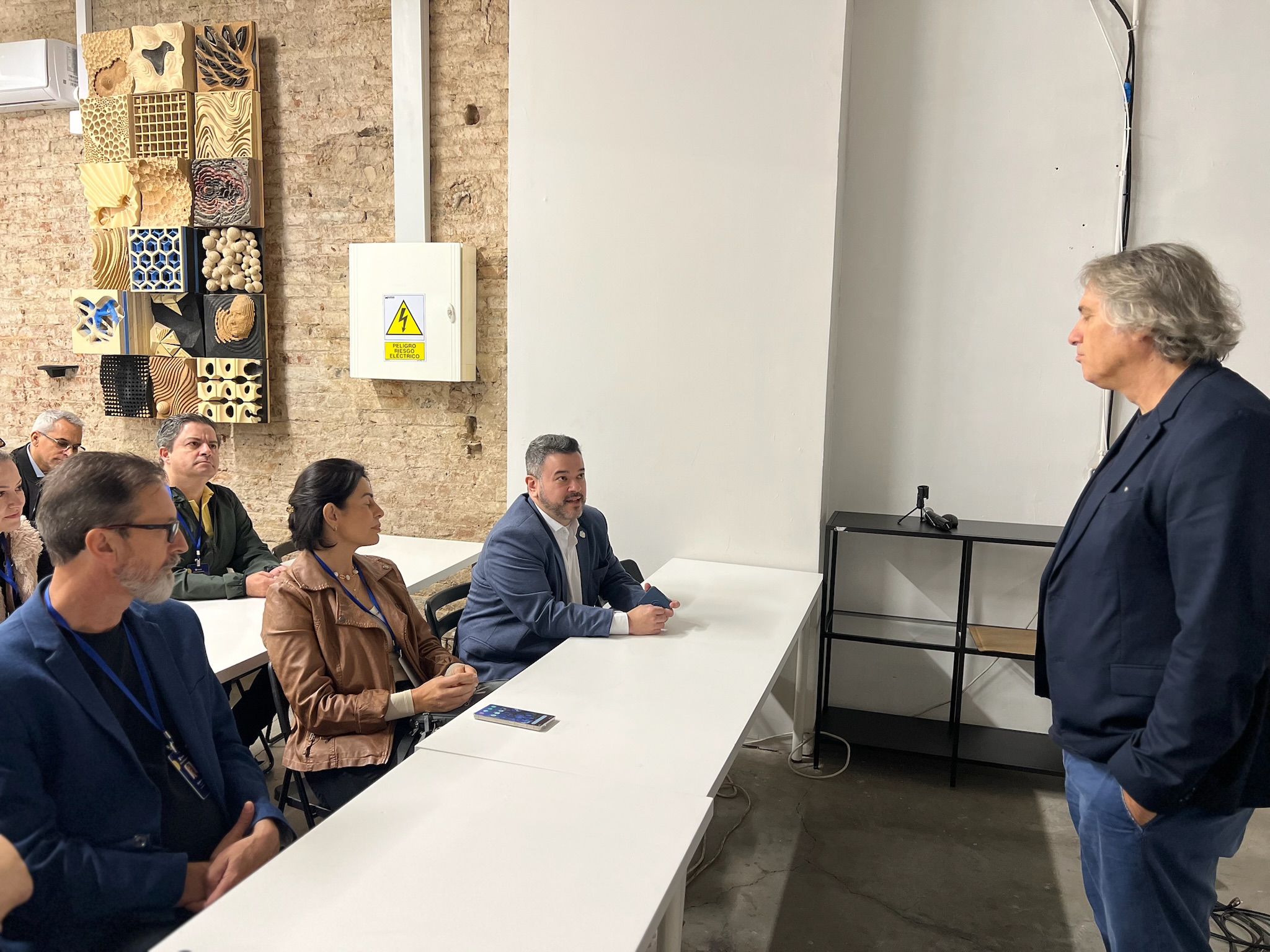 Ao chegarem na sede, que é um prédio tombado por ser uma antiga fábrica, a visita técnica começou com um tour por toda a estrutura, e em seguida o grupo se dirigiu ao IAAC Atelier, lá o anfitrião pediu para que cada um da comitiva se apresentasse. Nesse momento o Prefeito de Bom Jardim da Serra, Pedro Luiz Ostetto comentou com entusiasmo “estou levando muitas ideias para que possa implantar no nosso município, que é pequeno em número de habitantes mas com um futuro muito grande, é uma cidade próspera. Essa é uma viagem que vai ficar pra história”.