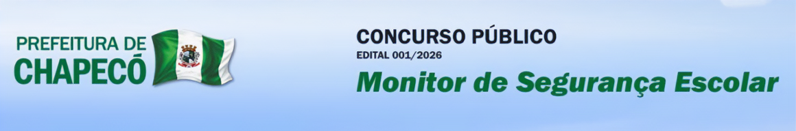A Prefeitura de Chapecó, por meio da Secretaria de Educação, publicou edital de concurso público para o cargo de Monitor de Segurança Escolar. Os candidatos aprovados serão contratados pelo regime da Consolidação das Leis do Trabalho (CLT). Estão disponíveis 160 vagas, com salário de R$2.350,00 para uma carga horária de 40 horas semanais. O profissional atuará no monitoramento de áreas internas e externas, depósitos de materiais, pátios, áreas abertas, centros de esportes, obras em execução e edifícios onde funcionam instituições educativas públicas, controlando a entrada e saída de pessoas, veículos e materiais.